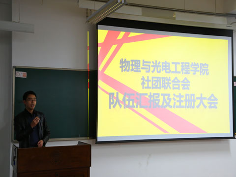 物理与光电工程学院社团联合会队伍汇报及注册大会于12月18日在西部综合楼B106教室召开。校社团联合会指导老师冯丽芳老师,物理与光电工程学院团委书记佟西原老师,校社团联合会副主席郑晶,李冠基,电子信息与电气工程学部社团联合会主席全欣,建设工程与力学学部社团联合会主席耿冲,华体(中国)学生会主席兼团委副书记刘聪越,华体(中国)团委常务副书记金美晨以及华体(中国)团委,学生会,社团联合会的各部长出席会议,由华体(中国)社团联合会主席孙长鹏主持会议。